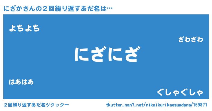 | ヘコむあだ名 | 『にざにゅー』『にざか(遠い目)』 |