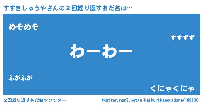 | ヘコむあだ名 | 『すずきしゅうや(遠い目)』『豆乳』 |