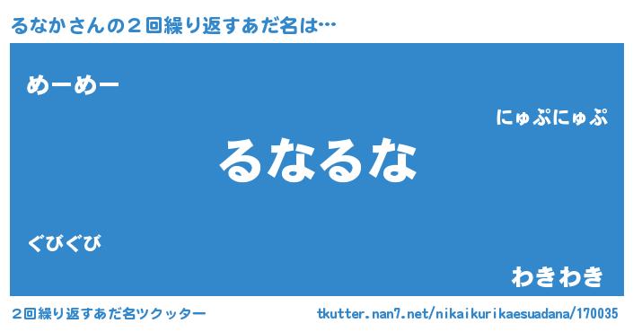 | ヘコむあだ名 | 『るなふぇ~』『るなを』『なまこ酢』 |