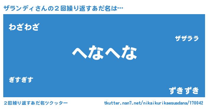 | 自動車の名前っぽいあだ名 | 『ザンR』『ザールスライス』『ザクア』 |