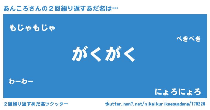 | 欧米人風あだ名 | 『アンジェラ・あんころ』 |