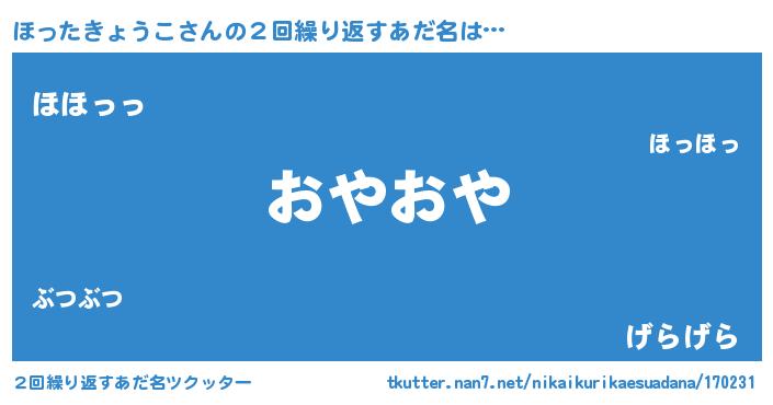 | 胡散臭い通販商品みたいなあだ名 | 『信頼と実績のサプリメント…その名も「ほったきょうこ」』 |