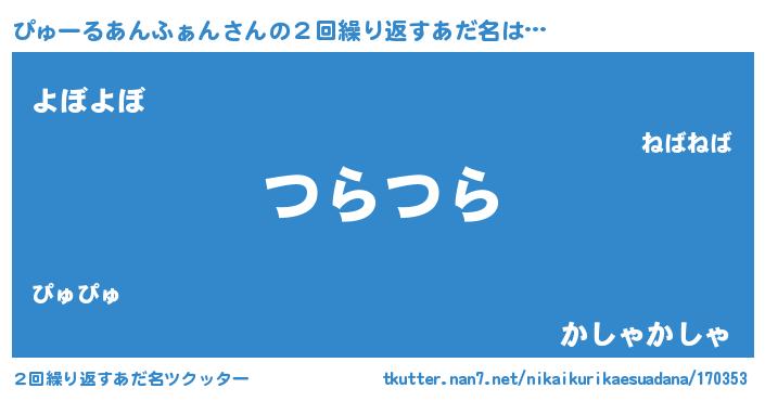 | 胡散臭い通販商品みたいなあだ名 | 『来世でも幸せになれる水素水…その名も「ぴゅーるあんふぁん」』 |