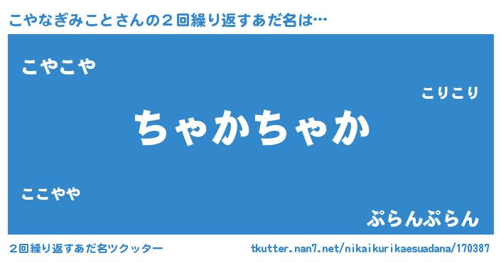 | ヘコむあだ名 | 『こやふぇ~』『こやなぎみこと(遠い目)』 |