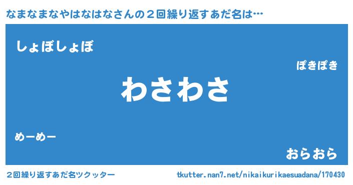 | 欧米人風あだ名 | 『トリンドルなまなまなやはなはな』 |