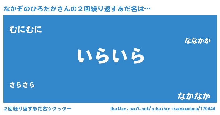 | ポケモン風あだ名 | 『ヒナカゾノヒロタカ』『ナカセウス』 |