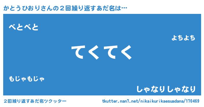 | 欧米人風あだ名 | 『かとうひおり・ステッグマイヤー』 |