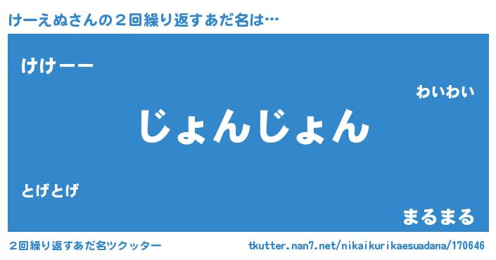 | 意味不明あだ名 | 『住所不定無職けーえぬ(74歳)』 |