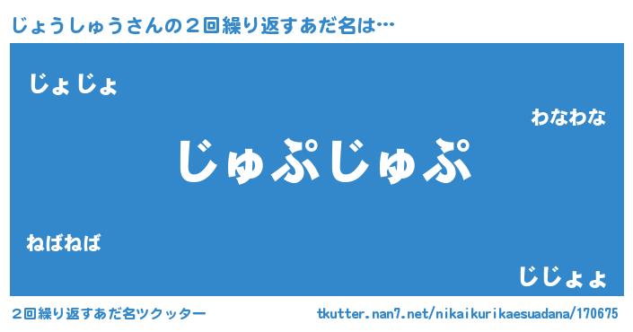 | 意味不明あだ名 | 『住所不定無職じょうしゅう(71歳)』 |
