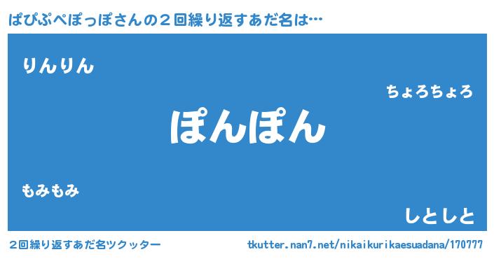 | 欧米人風あだ名 | 『ダニエルぱぴぷぺぽっぽ』 |