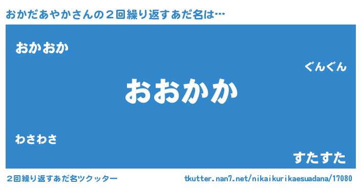| 欧米人風あだ名 | 『おかだあやかクリステル』 |
