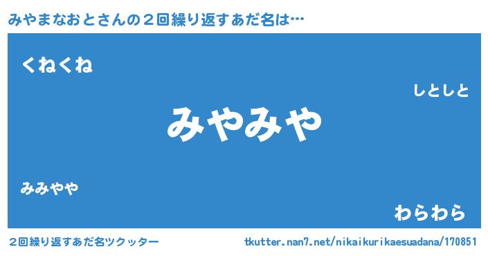 | ヘコむあだ名 | 『みやっふぃ~』『みやまなおと(震え声)』 |