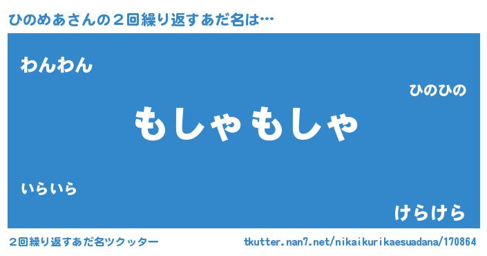| 男性向けラノベタイトル風あだ名 | 『ひのめあに滅ぼされるだけの簡単なお仕事です』 |