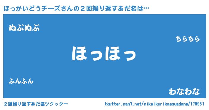 | 意味不明あだ名 | 『ペロリンほっかいどうチーズ』 |