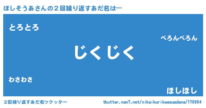 | 意味不明あだ名 | 『住所不定無職ほしそうあ(13歳)』 |