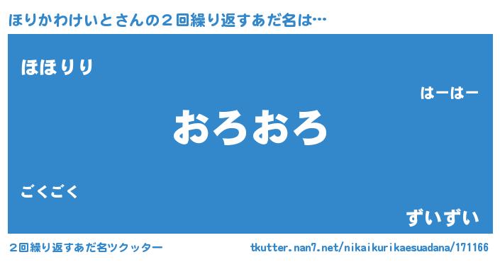 | 欧米人風あだ名 | 『ウサインほりかわけいと』 |