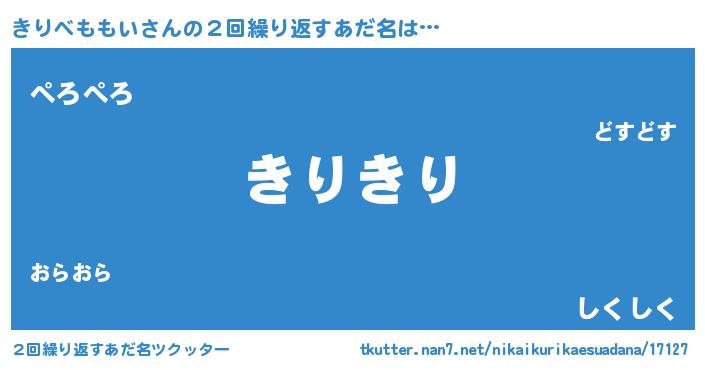 | ポケモン風あだ名 | 『キリチュウ』『キリゴンZ』 |