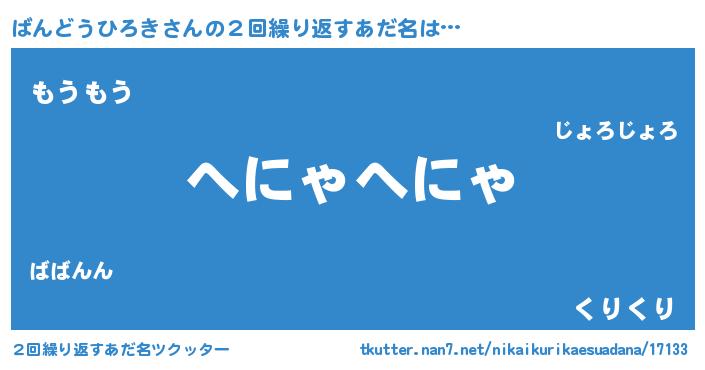 | ヘコむあだ名 | 『ばんどうひろき(苦笑)』『なまこ酢』 |