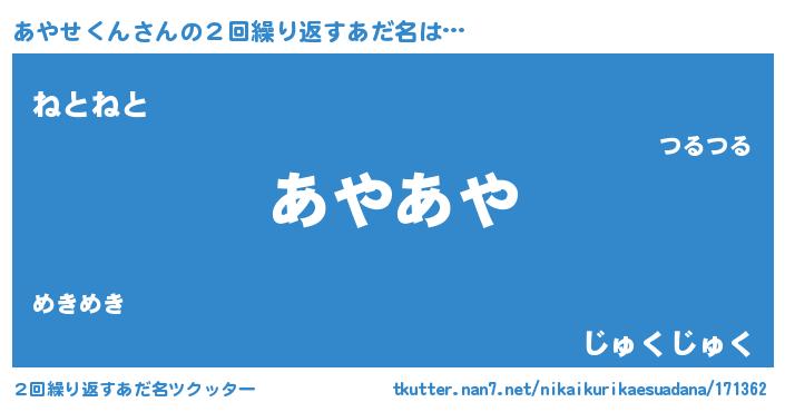 | ポケモン風あだ名 | 『アヤチュウ』『ヒアヤセクン』 |