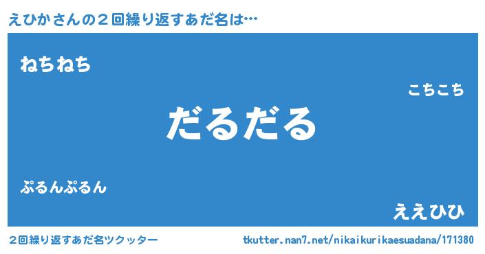 | 欧米人風あだ名 | 『えひか・ステッグマイヤー』 |