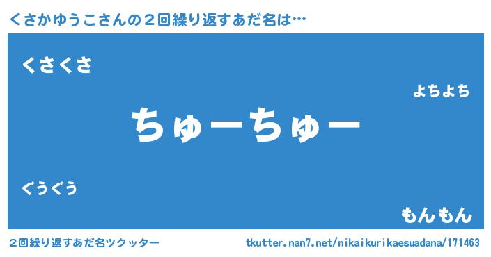 | ヘコむあだ名 | 『くさもー』『くさかゆうこ(笑)』 |