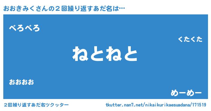 | 欧米人風あだ名 | 『ウサインおおきみく』 |