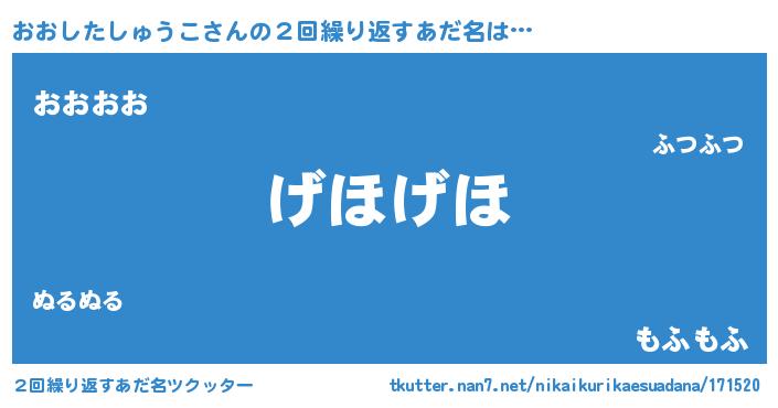 | 欧米人風あだ名 | 『ダルビッシュおおしたしゅうこ』 |