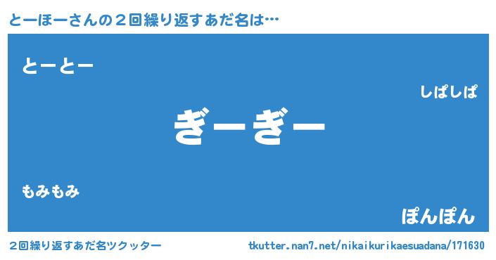 | 意味不明あだ名 | 『永久保存とーほー』『ペロリンとーほー』 |