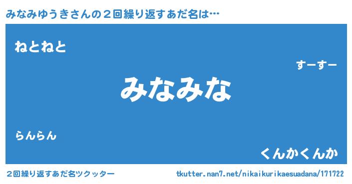 | ポケモン風あだ名 | 『ミナチュウ』『ヒミナミユウキ』 |