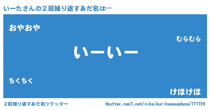 | 意味不明あだ名 | 『ペロリンいーた』『永久保存いーた』 |