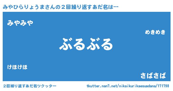 | 意味不明あだ名 | 『眠気覚ましガムみやひらりょうま味』 |