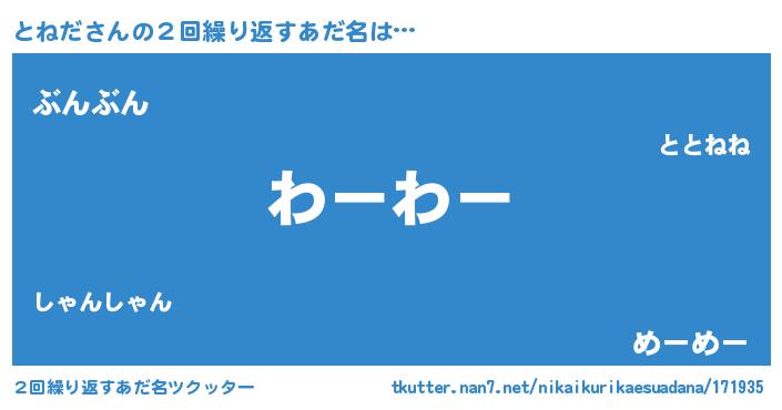 | 意味不明あだ名 | 『なめこ科とねだ属』『自称とねだ』 |