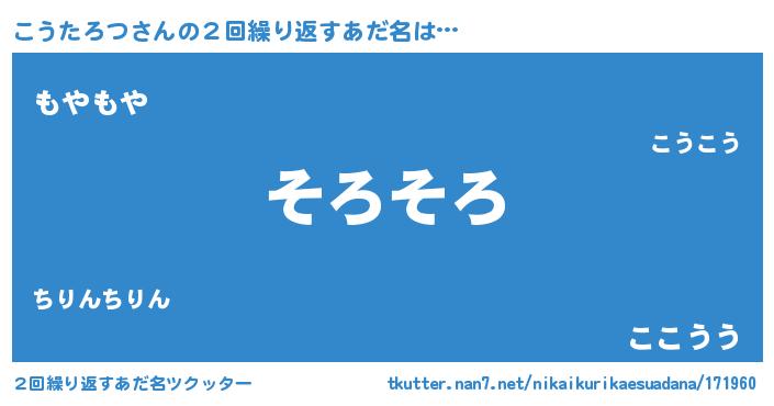 | 男性向けラノベタイトル風あだ名 | 『この素晴らしい世界にこうたろつを!』 |
