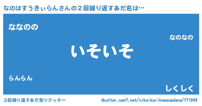 | 欧米人風あだ名 | 『ウサインなのはすうきぃらん』 |