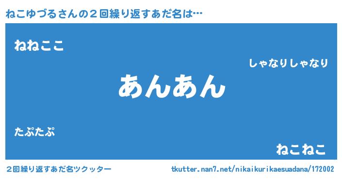 | 意味不明あだ名 | 『とにかく怪しいねこゆづる』 |