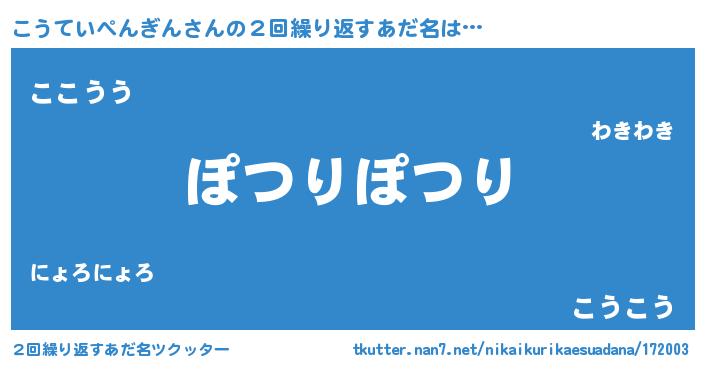 | 男性向けラノベタイトル風あだ名 | 『ノーゲーム・ノーコウテイペンギン』 |