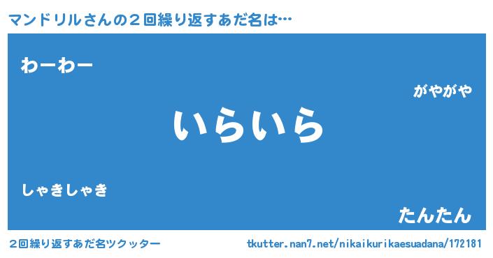 | 胡散臭い通販商品みたいなあだ名 | 『信頼と実績のサプリメント…その名も「マンドリル」』 |