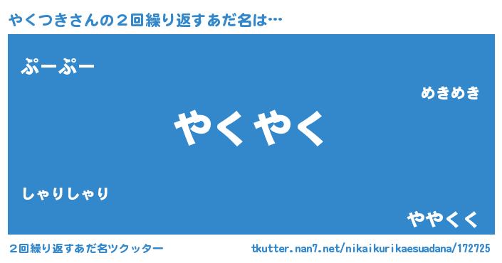 | 意味不明あだ名 | 『ペロリンやくつき』『自称やくつき』 |
