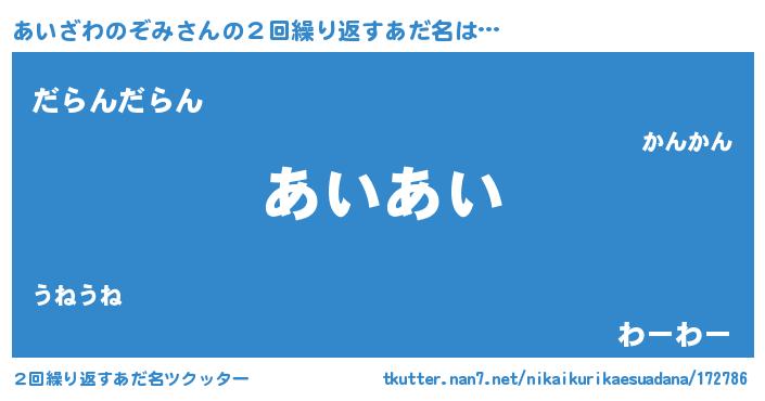 | ヘコむあだ名 | 『あいにー』『あいざわのぞみ(震え声)』 |