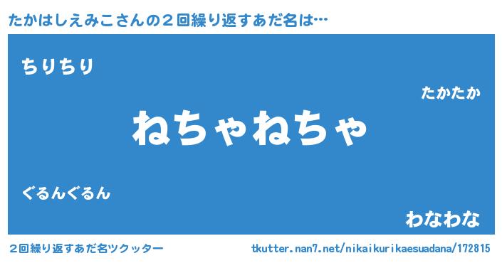 | 欧米人風あだ名 | 『ウサインたかはしえみこ』 |