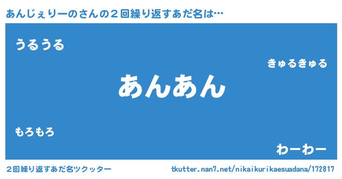 | 男性向けラノベタイトル風あだ名 | 『あんじぇりーのの憂鬱』 |
