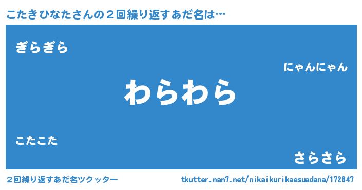 | 欧米人風あだ名 | 『トリンドルこたきひなた』 |