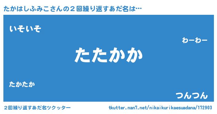 | ポケモン風あだ名 | 『タカハダネ』『ヒタカハシフミコ』 |