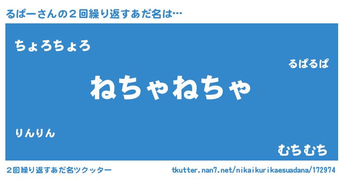 | ヘコむあだ名 | 『るぱ太郎』『るぱにー』『牛乳』 |