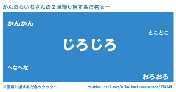 | 意味不明あだ名 | 『住所不定無職かんのらいち(5歳)』 |