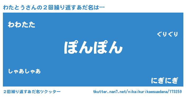 | ピコ太郎風あだ名 | 『ワワ太郎』『ピワ一郎』『ワタ太郎』 |