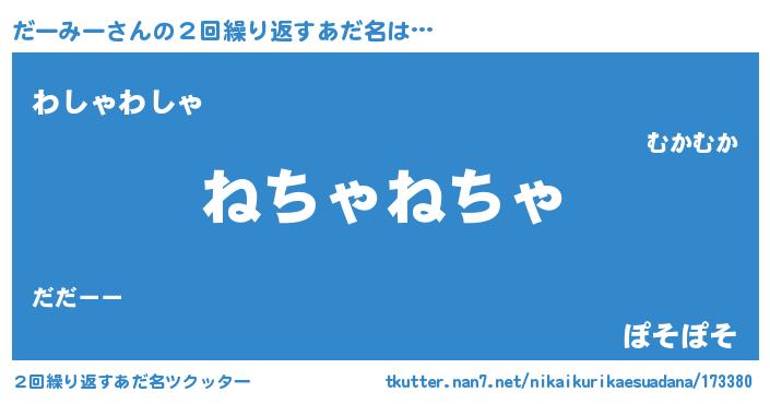 | 男性向けラノベタイトル風あだ名 | 『だーみーの嫁は女の子じゃないと思った?』 |