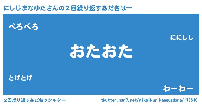 | 意味不明あだ名 | 『とにかく怪しいにしじまなゆた』 |