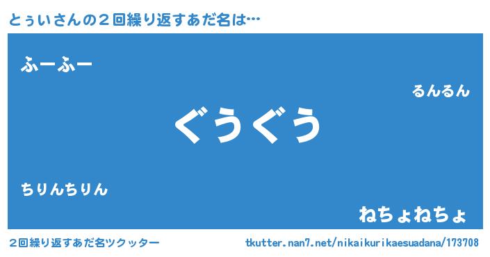 | 意味不明あだ名 | 『永久保存とぅい』『めかぶ科とぅい属』 |