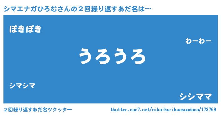 | 欧米人風あだ名 | 『ウサインシマエナガひろむ』 |